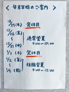 2026年1月の営業について、お知らせいたします。